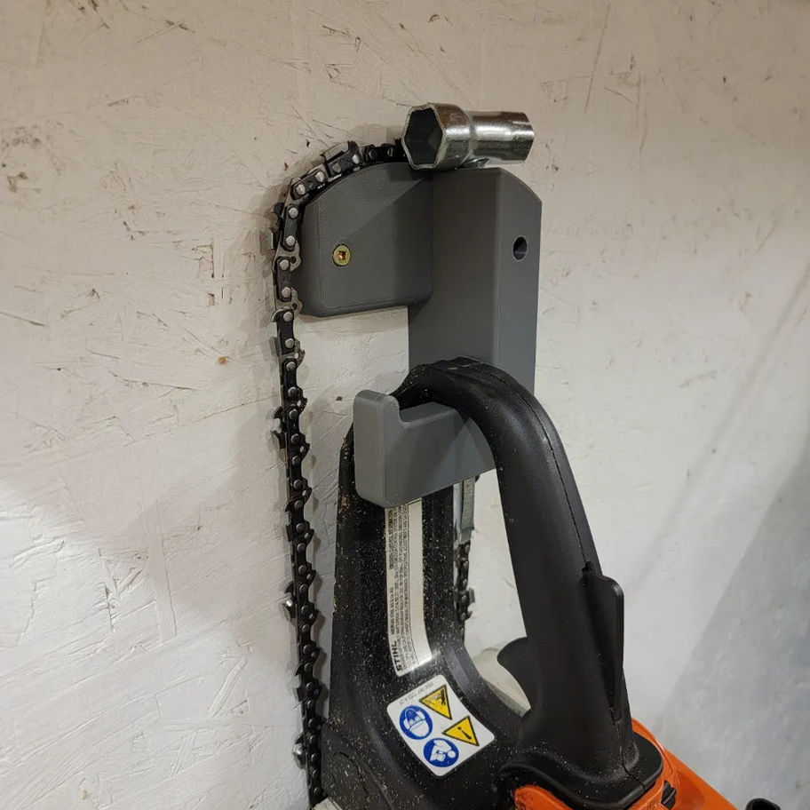 Premium workshop-grade durable 3D printed Chainsaw Holder Station for secure, space-saving organisation. Precision fitment and clean finish—ideal for UK workshops, garages and pro setups.